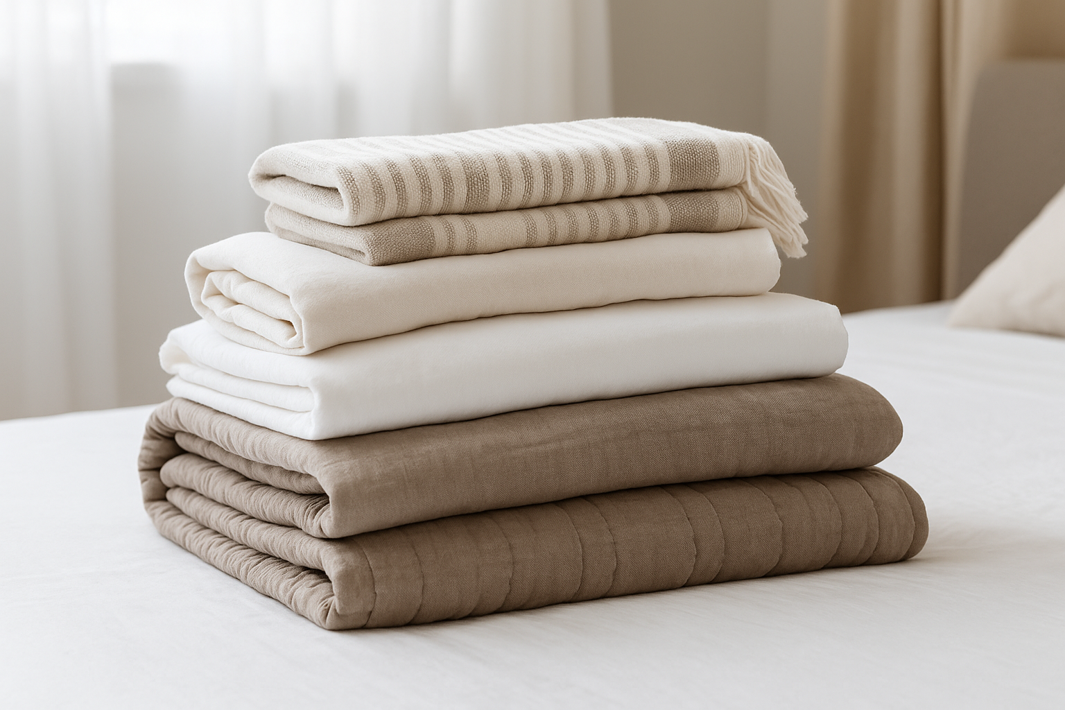 Chez Maison d’Hirondelle, nous sélectionnons des fibres naturelles et des tissus doux, certifiés et durables, afin de garantir un confort responsable.